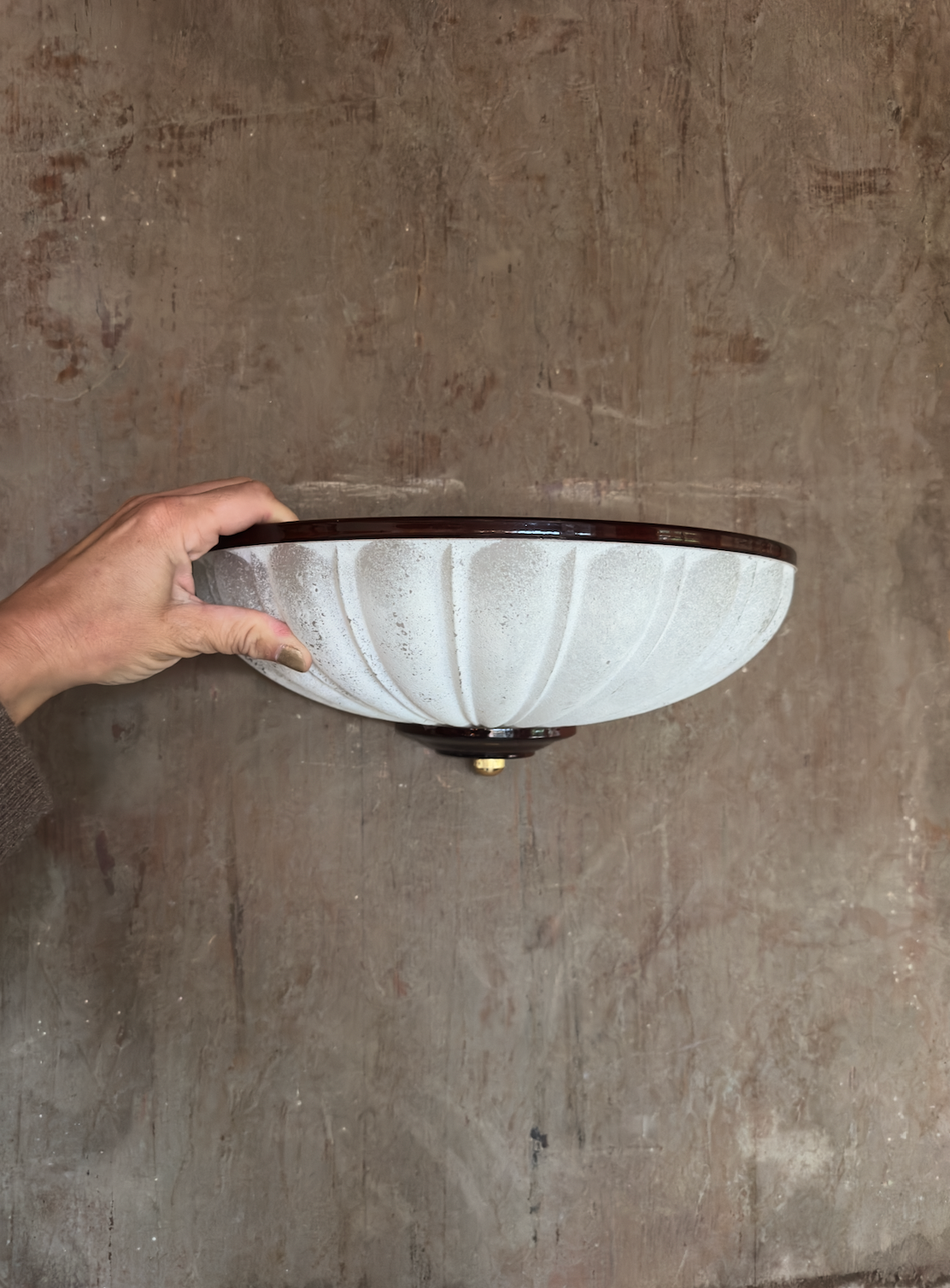 Forme coquille nervurée, monture en métal brun foncé et petit détail effet laiton