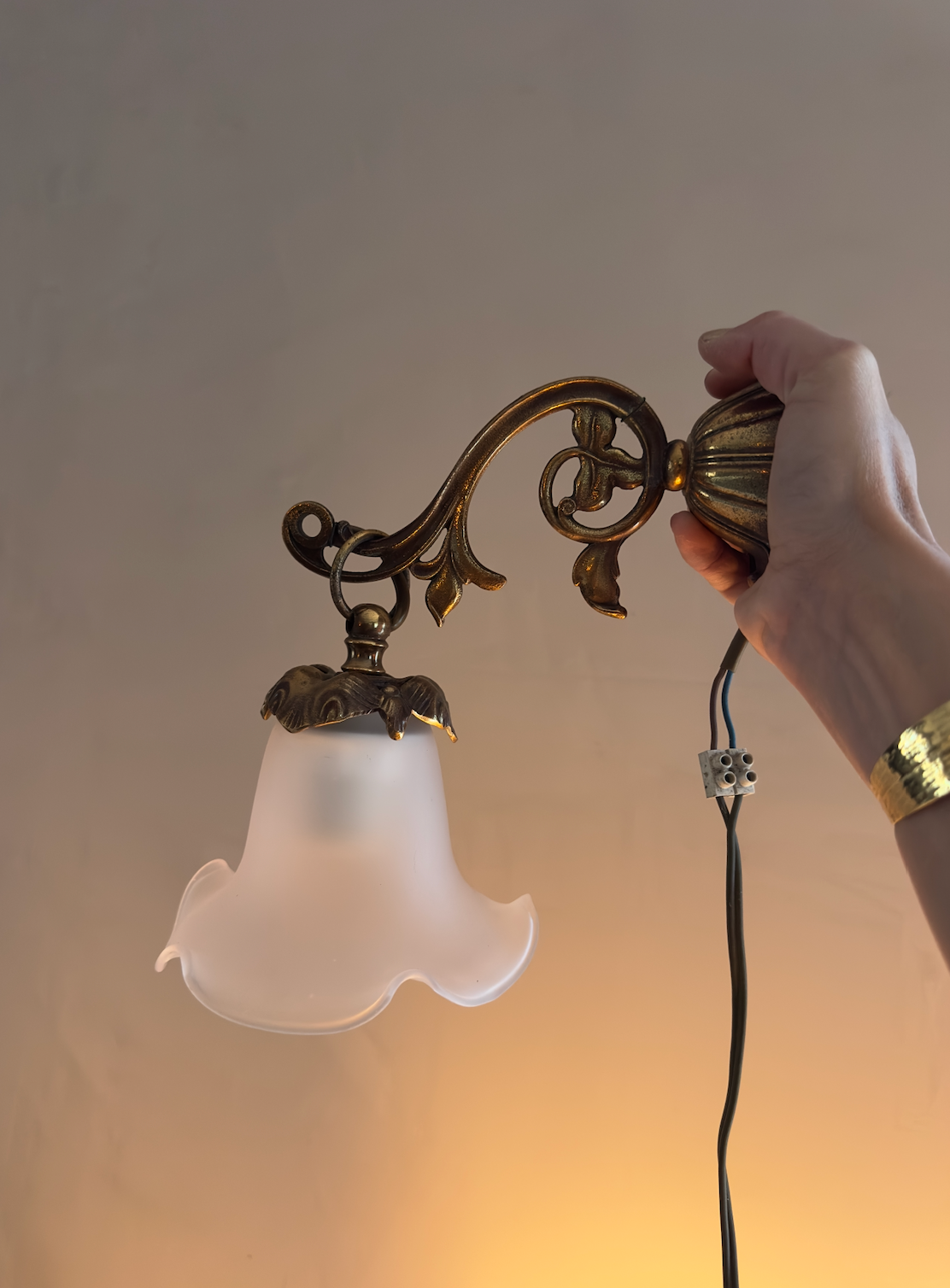 Le bras et la base en laiton patiné apportent une touche chic et rétro