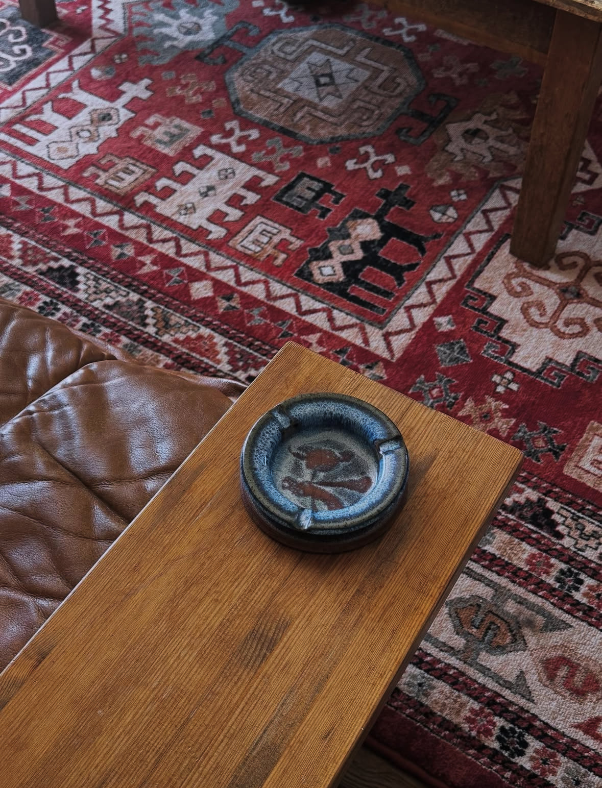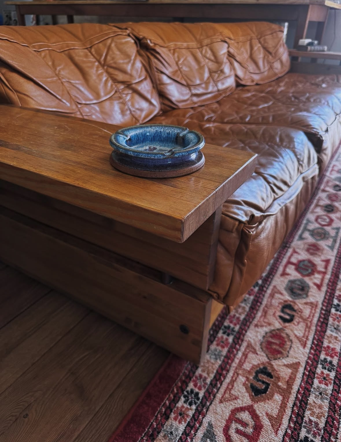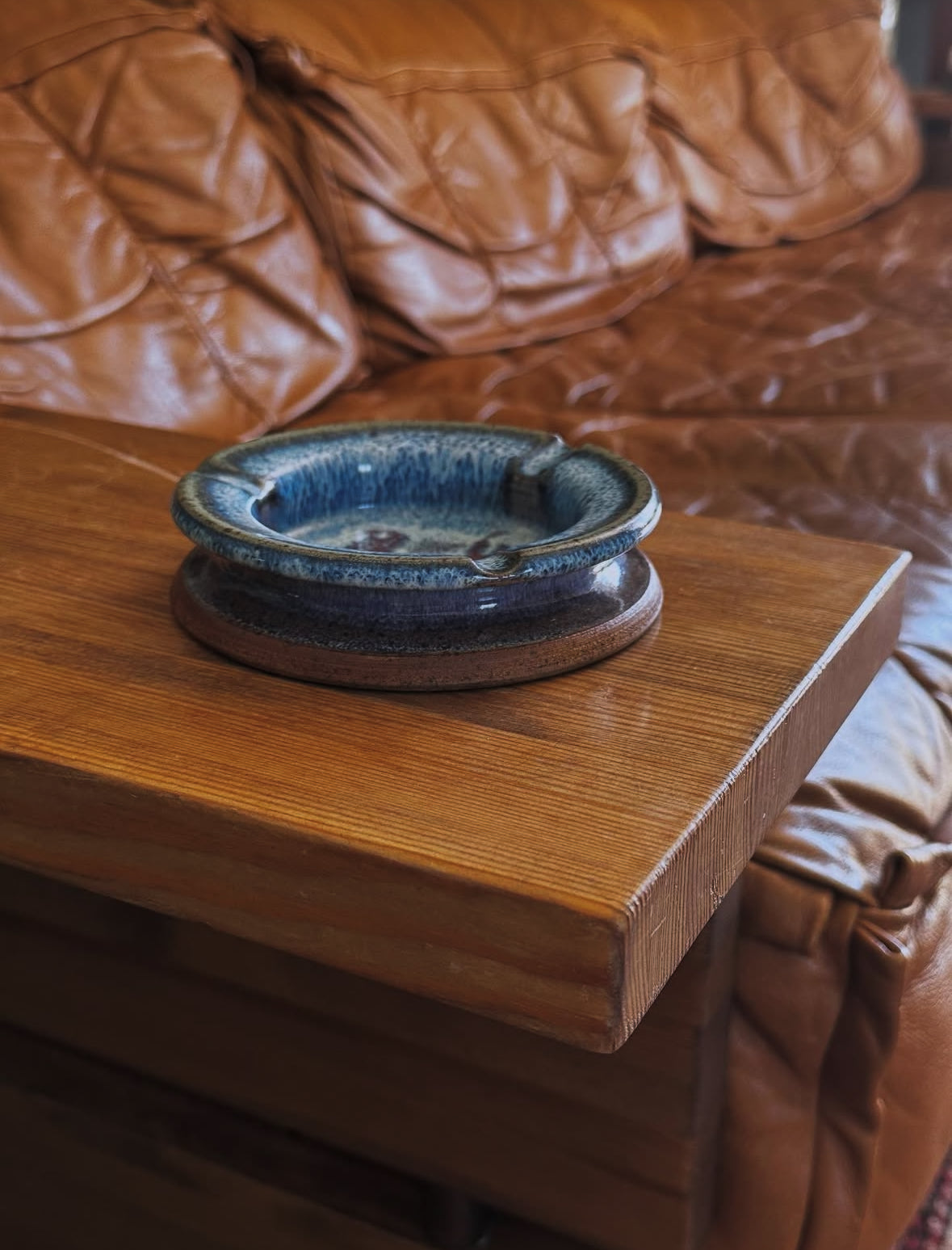 Une belle pièce artisanale aux nuances vibrantes de bleu, brun et crème. Parfait en cendrier bien sûr, mais aussi en vide-poches ou petit objet déco pour une ambiance vintage et chaleureuse.