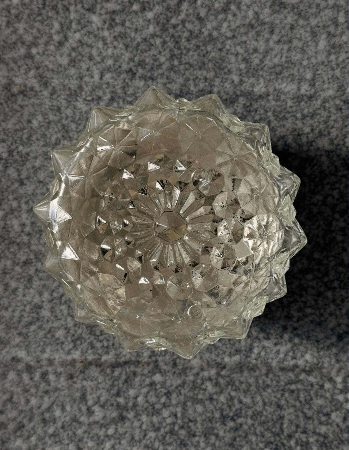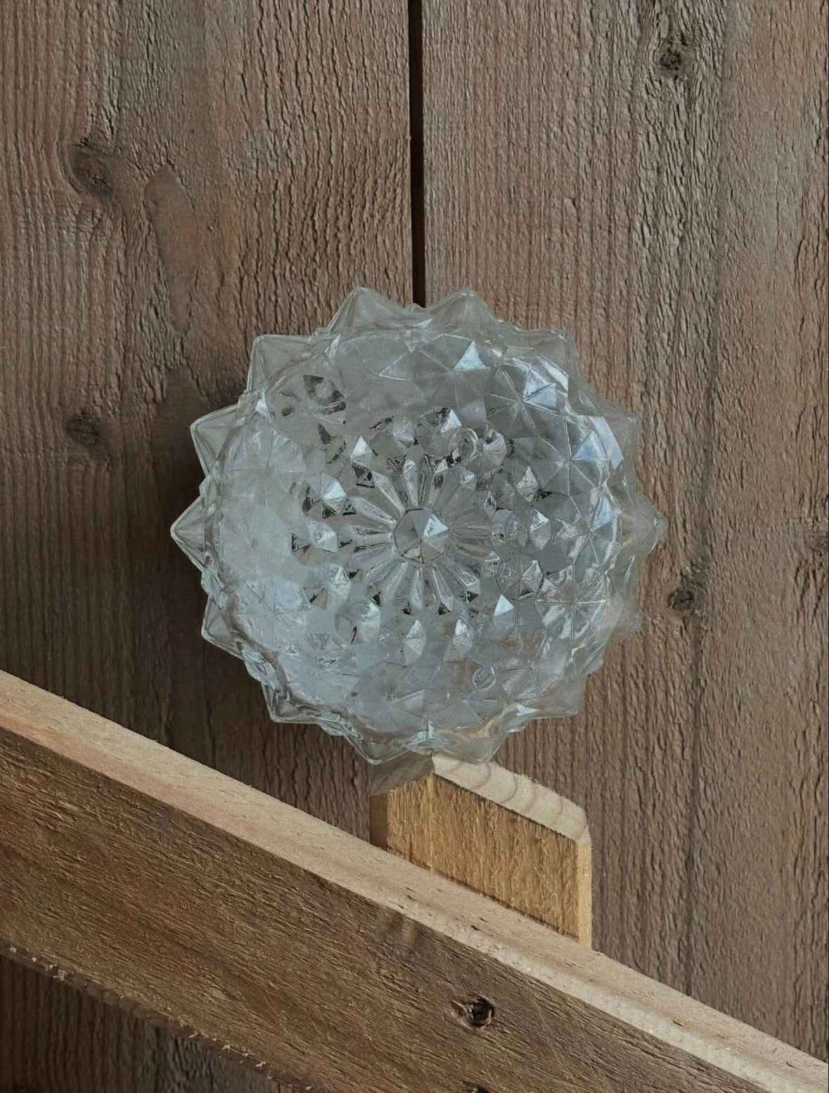 Très joli luminaires en verre pressé épais, motif facetté graphique.