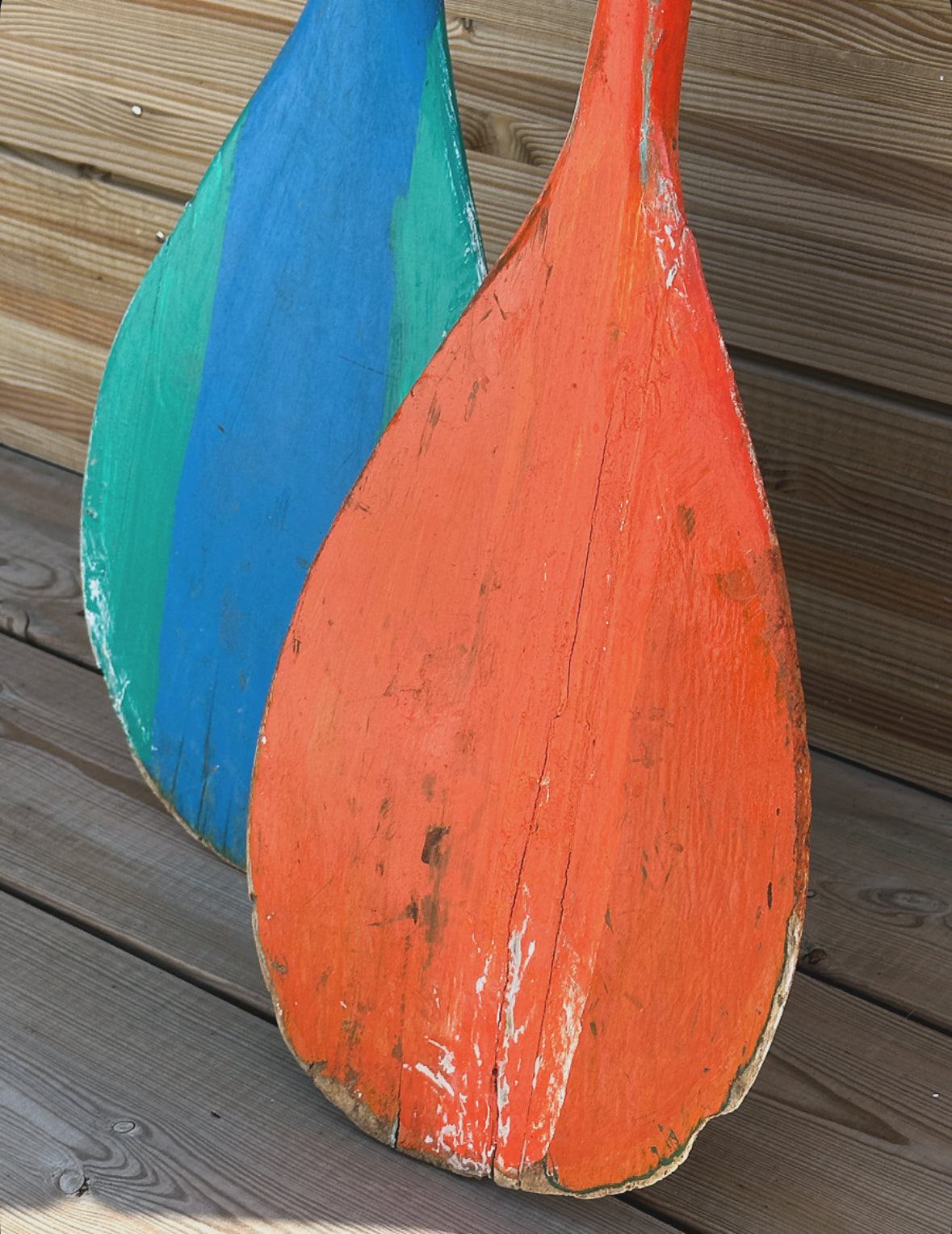 Un duo de rames anciennes pleines de charme, patinées par le temps et les marées imaginaires.